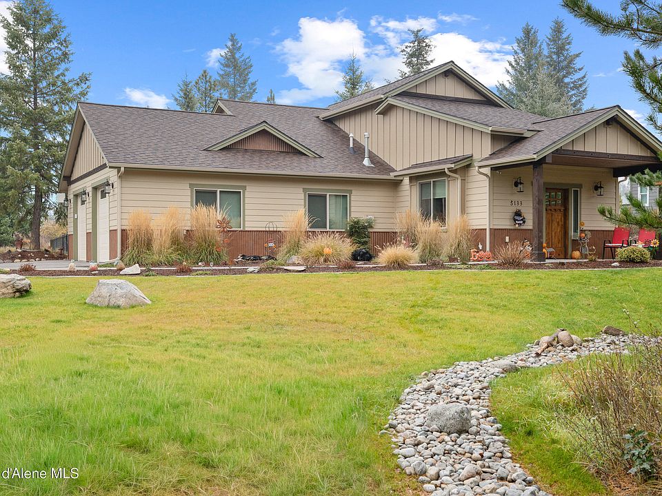 Experience the charm of small town living in this beautiful, modern and stylish bungalow set in the treed privacy of an acre. Located in a quiet, peaceful and tidy neighborhood, the home and landscaping features top of the line design with low maintenance and easy living in mind. Enter into a cozy sitting room that flows into the kitchen. Beyond that a roomy bathroom and master bedroom provide one floor ease of access. A loft area above the main floor can be a living space or a second non-conforming bedroom, in addition to a half bath and additional room currently being used as a craft room. The outdoor space includes beautiful landscaping with a fenced yard located off the patio area. There is a 30x20 shop - perfect storage space for your toys and equipment. A custom-built chicken coop is included with easy access for retrieval of fresh eggs for breakfast on the patio. Fishing, boating, golfing and other recreational activities are nearby, as well as Silverwood Theme Park.