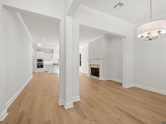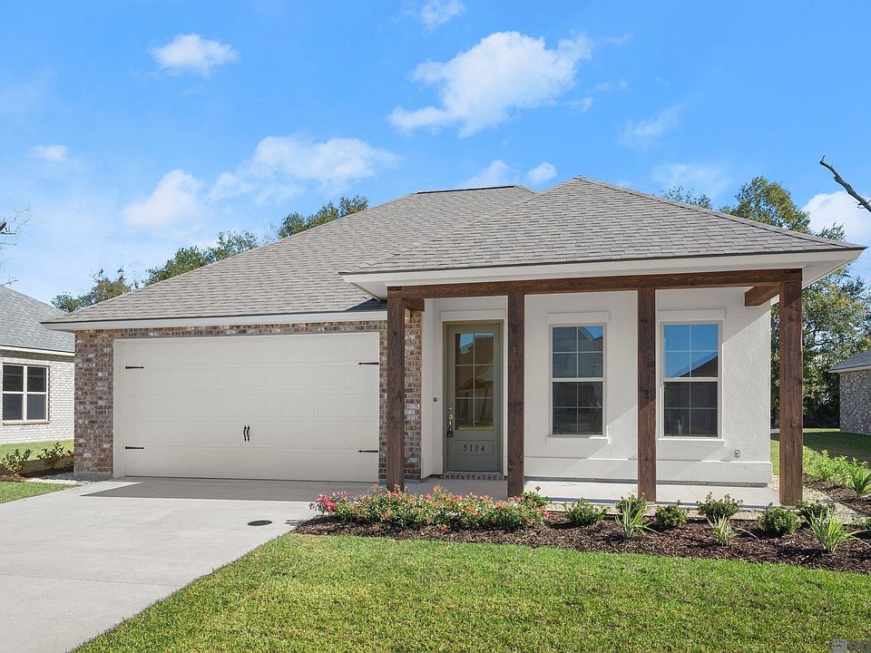 Introducing the “Hadley” floor plan by Level Homes to Riverton! The Hadley is a one story, 4 bedroom, 2 bath home with an open and split floor plan and just over 2000 sq feet of living. You will enter this home from the inviting front porch with gorgeous cypress beams into the foyer which leads you to the formal dining room, open living and kitchen. The living room is centered around a ventless gas fireplace with granite surround and has room for “optional” built in wall units. The gourmet kitchen features custom painted cabinets with 5" hardware pulls and under cabinet lighting, large center island with sink and overhanging pendant lights, White Ice granite countertops with a white subway tile backsplash, stainless appliance package including 30” gas cooktop, single wall oven and built in microwave, and a walk-in pantry. The master suite is very spacious and features a spa like bath with dual vanities, granite countertops, framed mirrors, separate 5' soaking tub, custom built tiled shower and a walk-in closet. There are three additional bedrooms, a full bath with dual vanities, a huge walk in laundry room with a space for “optional” cabinets as well as a “mud bench / optional desk area” at the garage entry. The yard is fully sodded and professionally landscaped. HOME IS MOVE IN READY!