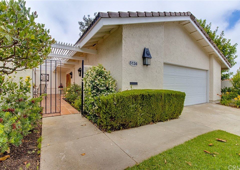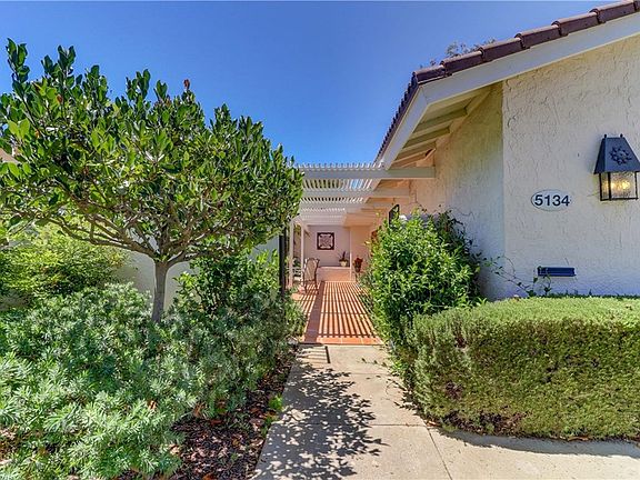 SEE INTERACTIVE FLOORPLAN VIRTUAL TOUR!! 55+ community 2BD/2BA "Villa Reposa" detached home with added square footage located on a quiet, interior street in the exclusive Gate 11 area with a private backyard setting protected by an ivy-covered slope. Lovely walk to front door with fragrant Star Jasmine, tiled front patio with trellis covering and lush planter area. Inviting front double door entry with glass panes to enjoy to outlook to the patio and appreciate the indoor/outdoor living lifestyle. Once inside, you'll enjoy the BRAND NEW WOOD LAMINATE FLOORING, dual pane windows, central heat/air, upgraded moldings and smooth ceilings. Expanded and remodeled kitchen area features stone counters, upgraded cabinets, recessed lights and is open over the sink to the dining area. Adjacent to the kitchen in an added den/office/dining area with lots of natural light adding over 200 sq ft of living space. Expansive living room enjoys high ceiling, custom fireplace and sliding glass doors leading out to the back patio. On each side of the living room is a beautiful master suite with remodeled bathrooms featuring tiled, no-threshold walk-in showers with bench and frameless doors, good sized window for light and air flow and stone topped vanities. Both bedrooms are carpeted and have sliding glass doors leading to the back patio and private, green outlook. Front and back trellis covered patio areas. Oversized 2 car garage w/finished walls/ceiling, recessed light and lots of storage.