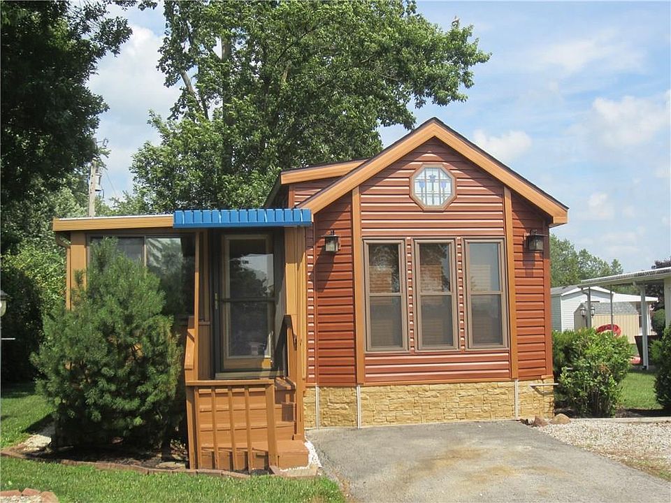 Have you seen Tiny Homes well you need to see this one!!! This is a 1994 Fairmount Park model home that has been renovated more along the lines of a Tiny home. In 2017 the home received a new roof , siding, windows, water softening system, cultured stone foundation facing and extra insulation. Some new appliances in the kitchen along with a High definition countertop. The home features separate kitchen and dining areas with a spacious living area with a gas fireplace. There is a walk-in shower in the full bath. The appliances to remain. Almost all furnishings to remain excluding a few personal items. There is a 12x16 Shed with electric including a second refrigerator. The home sits on relatively private, channel front lot with mature trees and bushes creating natural privacy fence. The annual lease of $3,110 includes water, sewer, trash, lawn care, snow removal and access to the pool. Buyers subject to park approval. Seller to pay Half of 2020 lease if closed by October 31.2019