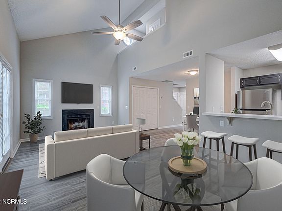 This 3BR 2Bath Townhome in Village Square is now move-in ready. Extensive updates add value and beauty to make this unit sparkle throughout. Everything shines from the stainless steel appliance package to the new light fixtures and bathroom vanities upstairs and down. Vaulted living room ceiling and lofted second floor add to the WOW factor. The wood burning fireplace gives a glowing ambiance to this expansive great room. New LVP flooring in all of the common areas and new carpet in all of the bedrooms make this home beautiful and cozy. Totally new in 2021 2.5 ton 14 seer Goodman Heat pump with 8KW. Large back fenced in patio and storage closet to relax in. HOA takes care of all yard work outside of your fenced area. Community has a seasonal pool and large grassy common area for all to enjoy.