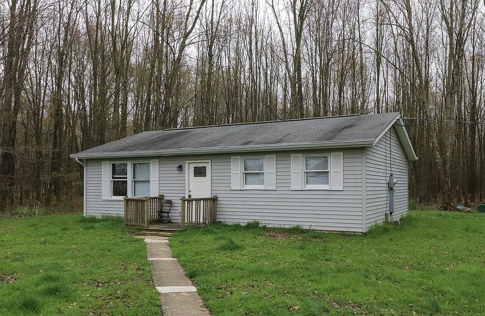 Sweet ranch on 21.01 private, wooded acres offers eat-in kitchen w/ceramic tile & walk-out, barn and pond. Great location just minutes from SR 32!