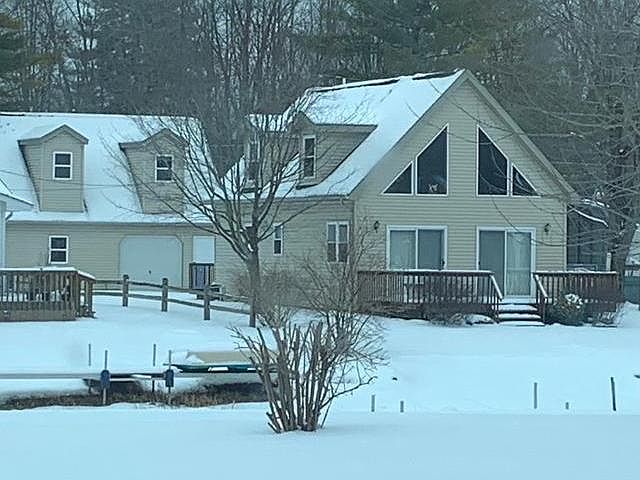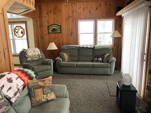 Very nice 3 bedroom 2 bath Chalet in move in condition and comes mostly furnished. Includes a 2.5 car detached garage with upstairs for extra storage or to be finished off for a guest house. Home has cathedral ceilings with knotty pine and some drywall too. Main floor has a bedroom, bathroom, kitchen, dining room, living room, & laundry room. Upstairs has a walk through bedroom with enough room for two twin beds on opposite sides of the room and a closet. Also upstairs is a large bedroom with an attached bathroom with shower. Enjoy a barbeque on the front or back deck. Across the road is a large area that is part of the association and this commons area has swings, a basketball hoop and a pavilion. Nice area of homes and quiet area. Call for a showing today!