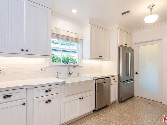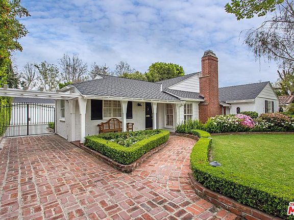 This serene move-in ready 2 Bedroom, 2 Bath home awaits on one of the most beautifully tree lined streets in the area. This warm and inviting home offers a great floor plan. Features include bright living room with fireplace and large window, a den that could easily be converted into a 3rd bedroom or formal dining room and French doors opening to a brick patio and a sparkling pool. The sprawling 9000+ square foot lot contributes to the coveted California lifestyle of endless outdoor entertaining. This enchanting home has mixed use floors of Terrazzo as well as Parquet. There is a new roof, solar panels, two fireplaces, central air & heat, built-ins in the family room, wet bar, recessed lighting, remodeled kitchen and baths. Crown molding throughout. The garage is detached and there is a bonus room which could be used for an office, gym or yoga studio. The home is located moments from major studios, cafes, parks, shops and houses of worship. Welcome home!