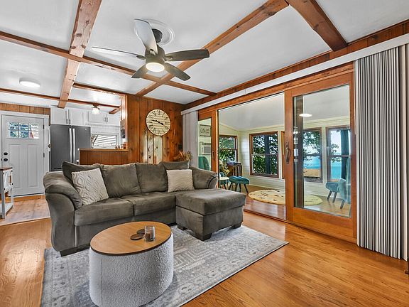 Don't let the front of this Houghton Lake property fool you, much of this lot is on the LAKE side. Private lake access is yours along with a large area for additional parking when needed. The cozy charm of this home is a great blend of knotty pine, wood floors, and a wood burning stone fireplace paired with an updated kitchen and soft tones in the primary bedroom. Soak up the lake views as you relax in the sunroom or from the back deck. In fact, the lake can be seen from almost every room in this home including the separate dining room, living room, two bedrooms, and from kitchen sink...making dish washing much more enjoyable. The kitchen has been tastefully remodeled including all new appliances, countertops, and flooring. The ½ bath was also remodeled. The boiler system and water heater are new as are the steel front door, side door, storm door, and wall side windows. The metal roof was added in 2017. There is a door leading from the kitchen to a fenced in area perfect for keeping your dogs safe while they have playtime. There is also a 2-car attached garage and 12x16 shed for storage. Don't just drive by, schedule an appointment to see this lovely home with lake access!