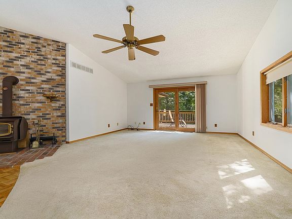 Wood-burning stoveFinished lower levelVaulted ceilingsBreakfast barPrivate wooded drive