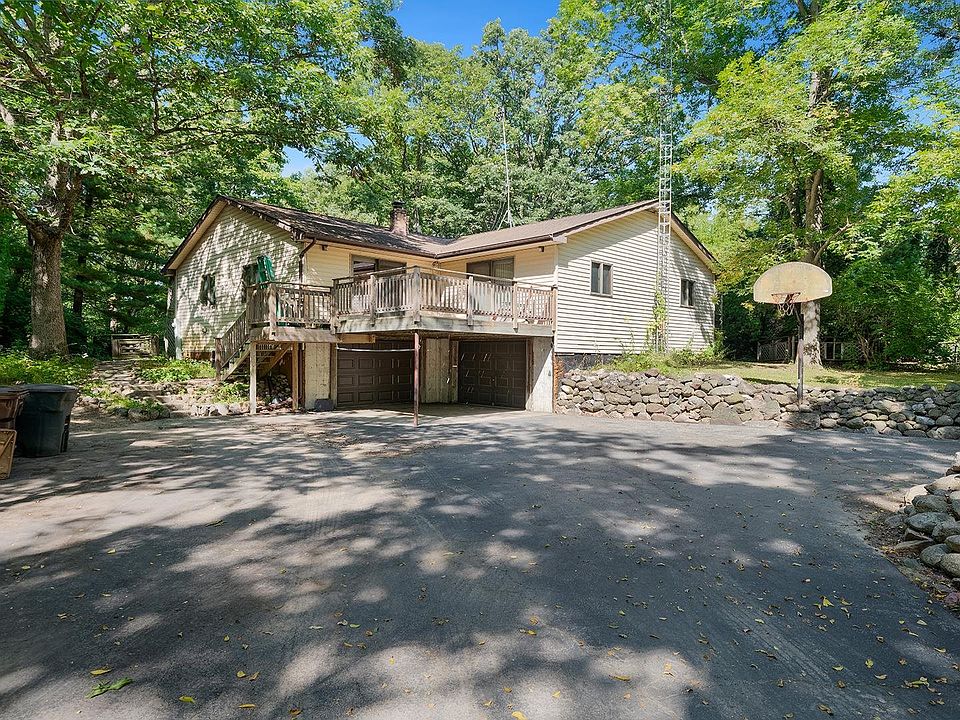 Set on just over an acre with a private wooded drive, this home offers both peace and space. The open-plan living area features vaulted ceilings, a wood-burning stove, and patio doors that lead to a large 16x20 deck with views of the serene backyard. The kitchen includes ample cupboard and counter space, a breakfast bar, and an easy flow into the living area. On the main level, you’ll find 3 full-sized bedrooms and a full bathroom. The finished lower level expands your living space with a family room complete with another wood-burning stove, a second full bathroom with laundry, and a extra room that can be used as an office, playroom, or guest space. A 2-car attached garage adds convenience, while the large outbuilding offers even more possibilities for storage, hobbies, or workshop needs. Updates include Anderson windows, energy-efficient 6-inch insulated walls, a roof replaced 7 years ago, and both the front and back decks redone within the past 7 years. This home combines rustic charm, practical updates, and plenty of room inside and out.