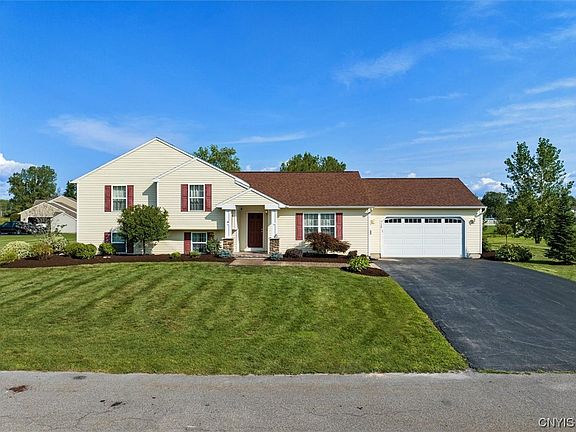 SPECTACULAR OPEN FLOOR PLAN SPLIT LEVEL BUILT W/ MANY UPGRADES, SUPER LOCATION, SPECIAL CORNER LOT .91 ACRES W/POND & VIEW! ROOF, SIDING & OTHER EXTERIOR JUST 5 YRS NEW AFTER HALE IN 2018. EXTENSIVE LANDSCAPING & TREES, NEW STAMPCRETE PORCH & SIDEWALK, STAMPCRETE PATIO, HUGE SHED, GUTTERS, GARAGE DOOR, PAVED DRIVEWAY & WHOLE HOUSE GENERATOR ALL ADDED! WONDERFUL LAYOUT W/VAULTED CEILINGS & GORGEOUS HARDWOODS AS YOU WALK INTO CENTRAL FAMILY ROOM W/CORNER GAS FIREPLACE, OVERLOOKING THE GOURMET KITCHEN W/RAISED PANEL CABINETS, ISLAND, GRANITE COUNTERS, ALL APPLIANCES. REALLY RELAXING, BEAUTIFUL VIEW OF YARD, TREES, LANDSCAPING, & POND FROM KITCHEN TABLE OR THE BACKYARD PATIO, MUST SEE! OWNERS MORE RECENTLY HAD LOWER LEVEL FINISHED, CHILL OUT OR WORK IN THIS AMAZING SPACE! LOTS OF LIGHT & EGRESS WINDOWS TO VIEW THE LOVELY YARD! YOU'LL LOVE THE LAUNDRY ROOM SIZE, STORAGE & COUNTER SPACE. HALF BATH W/ROOM TO EXPAND, MORE UNFINSHED STORAGE AREA TOO! UPSTAIRS PRIMARY BEDROOM HAS WALKIN CLOSET, & FULL BATH W/DOUBLE SINKS! TWO ADDITIONAL BEDROOMS & FULL BATH! TWO CAR GARAGE, LARGE DRIVEWAY, & ALL LOCATED IN THE BEAUTIFUL RIVERWALK COMMUNITY, CLOSE TO ONEIDA LAKE, RT 81, & SOON TO BE MICRON!