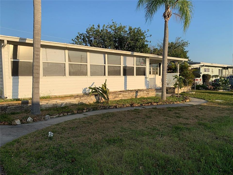 Fixer upper for you! 3 beds, 1 1/2 baths on a lot and a half. Cash only. Tarps on the roof to prevent the brand new ceiling from being leaked upon. Owner provided contractor estimate indicates a fee of $6300 for roof repair." It is located in the very active and super friendly community of Fair Lane Acres! Whether it's bingo, shuffleboard in one of 2 shuffleboard courts, games card playing, dinners--you name it and most likely you'll find it in this community! Early on you'll make precious friendships that will last a lifetime! And it is convenient to just about everything whether it is the beach, restaurants, entertainment, shopping or whatever you'll most likely find it close by. How about WALKING to the mall! AND WHY PAY EXPENSIVE LOT RENT WHEN YOU CAN LIVE HERE FOR A MERE $135 A MONTH AND THAT INCLUDES WATER AND SEWER! Winter's coming on so don't spend another season in the cold ice and snow! Come to Florida and experience the gentle winter climate and delightful Florida lifestyle that you have always dreamed about at FAIR LANE ACRES!