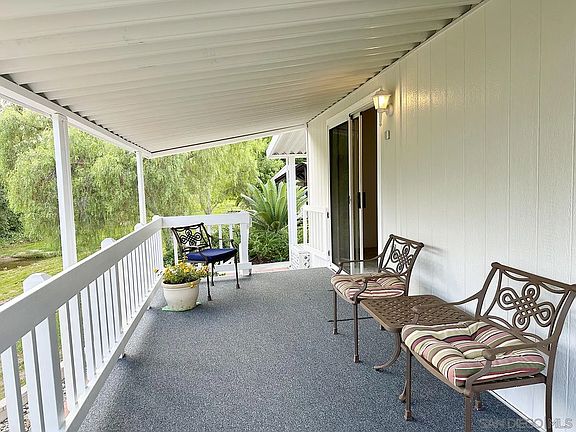 Great creekside location! YOU OWN THE LAND. Highlights include an open floor plan - great for entertaining. Kitchen has ample storage and a breakfast bar. Large Primary bedroom has a separate dressing room and 2 closets. Primary bathroom has a soaking tub and a walk-in shower. Central Heat & Air. Vaulted Ceilings. Extra large family room with a fireplace. Large private rear deck overlooking the creek. Located in Rancho Carlsbad Country Estates, a 55+ resort style community. Amenities and activities galore. Close to world class beaches, shopping, fine dining, and the Carlsbad Village.
