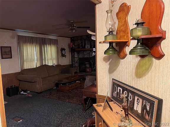 Nice little ranch with four acres, a small barn, shed and storage bldg. The property is fenced and there is a hook-up for an RV. The living room features a fireplace and there is an open floor plan for entertaining. There are nice windows that fold out to wash and a whirl pool tub in the master bedroom with a walk-in closet. There is a covered porch on the front of the home for leisure evening. Lots of potential, but Seller wants to sell "As Is".