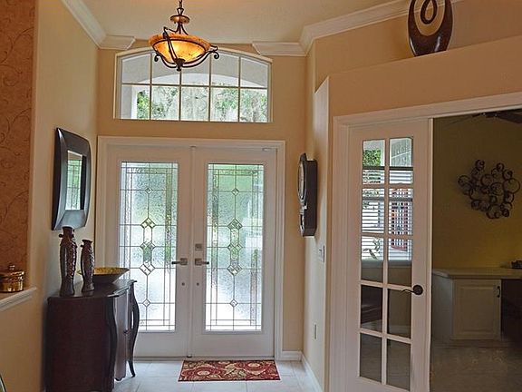 Situated on the most beautiful lakefront lot in all of Magnolia Pond is this wonderful 4 bedroom, 3 bathroom, plus office custom built pool home by Maglich. You will fall in love from the moment you walk through the double doors into the spacious foyer. With over 2500 sf under air & over 3300 total sf, this home can easily accommodate a large family or those wanting extra room for overnight guests. You will enjoy cooking in this fabulous kitchen that has top of the line commercial grade Viking stainless steel appliances including gas, granite counters with custom hand-crafted back splash, large breakfast bar, built-in desk and walk-in pantry. This home is made for entertaining with it's elegant formal dining room that has a stunning triple crown step ceiling and formal living room. The home also offers an open concept with the large kitchen, breakfast area & family room that overlooks the serene lake and invites you to the private paver brick screened lanai that covers the newly redone gas heated pool & spa. Thought and detail went into this custom design with wider hallways, 4th bedroom that could be used as a kid's hangout room or bonus room, large closets, oversized garage with two windows & side garage door, 21x10 attic that is floored for full storage, 12 ceiling fans, crown molding & central vacuum system. This meticulously maintained home has had only one owner and has been updated with love & style! All of this in a 5-star school district!