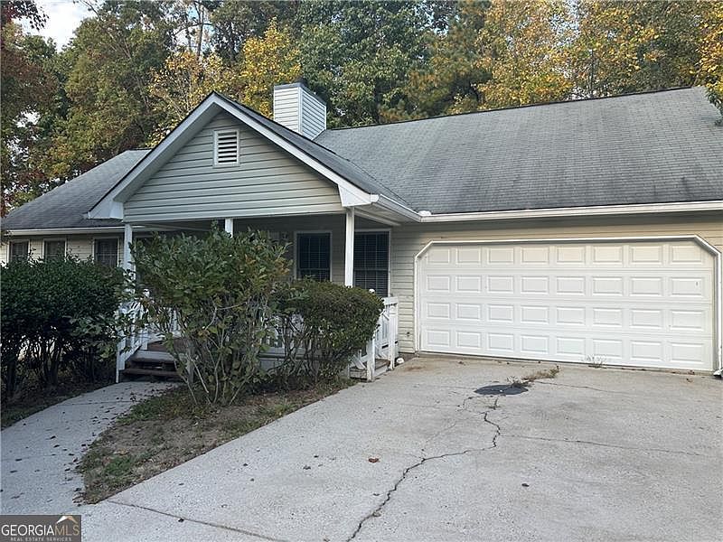 Can't miss ranch home located in Gwinnett County! As soon as you enter you are greeted by a rocking chair front porch with views into the fireside family room. Family room has vaulted ceilings with hardwoods and plenty of natural light. Open concept first floor had stained cabinet kitchen with eat in breakfast room, laundry closet and access to the back deck. Primary suite has private bathroom and two more bedrooms share a full hall bath. Deck off the back is private and has tons of privacy. Downstairs has unfinished basement with window and access to the backyard. HOA free neighborhood that's located near shopping, restaurants, major highways and more. SOLD AS IS.