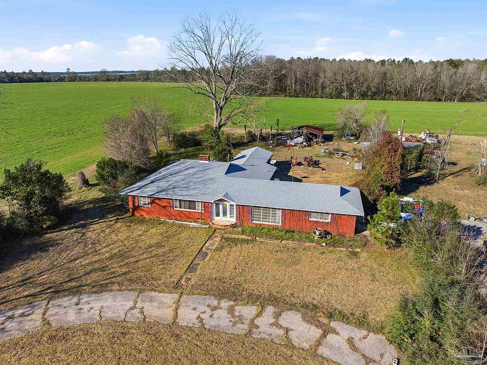 Brick home offering almost 2,100 square feet of interior space on approximately 1.78 acres in a quiet, private rural setting with no immediate neighbors. Zoned AG-RR (Rural Residential Agriculture), this property presents a compelling opportunity for investors or buyers seeking a renovation project with land, scale, and long-term flexibility. Originally constructed in 1955, the home features three bedrooms and one bathroom, with layout potential to add a second bath. Several original elements remain, including hardwood floors, heart-pine paneling in select rooms, vintage bath details, French doors, and a wood-burning fireplace, offering a strong starting point for restoration or modernization. The floor plan includes a large kitchen and an oversized, separate-yet-connected laundry and storage room, creating functional space that can be reworked to suit a variety of renovation visions. A two-car garage, circular driveway, and multiple exterior buildings add utility and flexibility for storage, workshop use, or future projects. The property also benefits from a newer roof (2022) - an important capital improvement already in place! The surrounding acreage provides room to breathe and enhances the sense of separation and privacy, making this an appealing option for buyers looking to create a personal retreat, income-producing renovation, or long-term rural homestead. Utilities are currently off and may not be activated for inspections. Property is served by septic tank(s), with water source unknown and possibly well. Due to the nature of the estate, sellers have limited knowledge of property conditions. Property is being sold AS-IS/WHERE-IS, WITH ALL FAULTS. No repairs will be made. Buyer to verify all information and suitability for intended use.