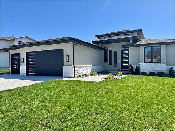 The Monterey is a striking contemporary reverse 1.5-story home featuring 4 bedrooms (with an optional 5th), 4 baths, and a 3-car garage. The exterior showcases a sophisticated blend of stone and acrylic stucco, complemented by a custom front door with 13-lite geometric glass. Inside, walnut hardwood floors and a matching trim package add warmth and elegance.