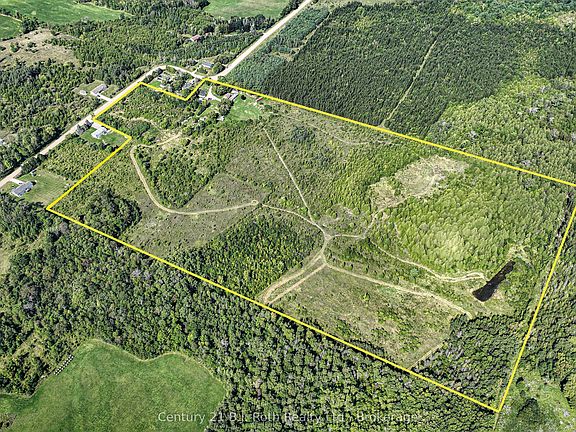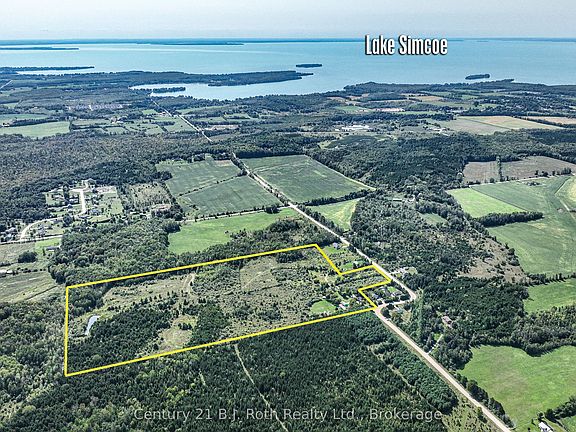 This picturesque piece of land has been in the same family for 80 years and now is your chance to take over. Almost 45 acres of fields, forest and trails, and apple orchard. Spring fed pond at rear of property provides oasis for wildlife. Live in the original 2 Bedroom, 1 Bath farmhouse as you build your dream home. Original Barn converted to Studio with large, separate septic, Kitchen, Living area, 2 Baths & Loft overlooking the main floor. Summer Bath rm./Shower rm. This property would make an amazing Rural retreat or Hobby Farm. Just a few minutes from Orillia, and both Lakes Simcoe & Couchiching, as well as many local parks & recreational areas. Enjoy entertainment at Casino Rama a short drive away.