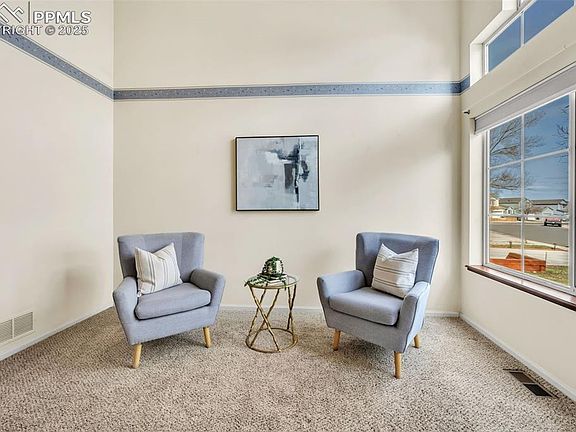 This charming 3-bedroom, 3-bath home is nestled in the quiet and convenient Sundown neighborhood, offering a prime location for quick access to the Powers corridor and nearby military bases. The main level features two spacious living areas, a well appointed kitchen with an island and plenty of storage. Upstairs, you’ll find a generous master suite complete with a cozy private sitting room and its own fireplace — also ideal for an office or nursery. Two additional bedrooms and bathroom complete the upper level. The unfinished basement provides excellent storage options, workout space or the potential to create additional finished living space, such as a fourth bedroom, bathroom and additional family room. Outside you'll find a newer class IV hail resistant roof, mature trees front and back, a well maintained lawn, and a freshly painted exterior.