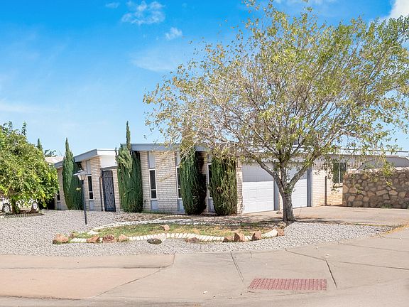 Welcome to this beautifully refreshed 4 bedroom, 2 bathroom home in Northeast El Paso. Offering over 2,200 square feet of living space, this home features brand new carpet and fresh interior paint throughout, including trim, doors, and baseboards, giving it a move-in ready feel. Nestled in a quiet cul-de-sac within the El Paso Independent School District, this property sits on just under a quarter of an acre. The oversized corner lot provides a large yard with plenty of room for entertaining, gardening, or play, all while enjoying stunning mountain views. This open concept floor plan offers two spacious living areas and a fireplace. Along with a sunroom and workshop space in the garage! Conveniently located near schools, shopping, groceries, and restaurants, this home combines comfort and practicality with a prime location. With its spacious layout, extra living areas, and desirable neighborhood, it's ready for its new owners to make it their own. Home also has a 3.5% VA assumable rate!