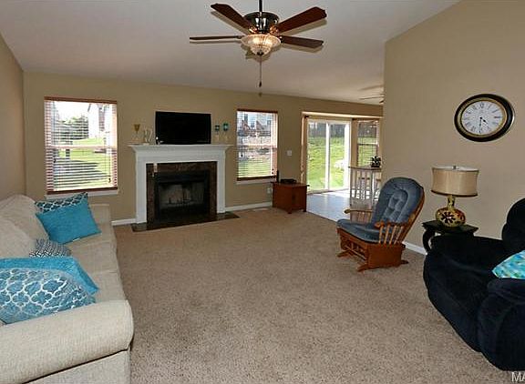 Clean almost like brand new 5 year old 3 bed 3 bath 1450 square foot home in Seckman Glen subdivision. Very open and modern floor plan with vaulted ceilings & upgraded flooring throughout. Vaulted great room has a wood burning fireplace with custom marble surround. Large formal dining room for large family gatherings. The kitchen is large with an abundance of upgraded cabinets and adjoining breakfast room with bay. Walk out from the breakfast room to the nice large level yard. There is a 3rd full bath in lower level. Large master bedroom suite has walk in closet and full bathroom with double bowl sink. Garage is big enough for 2 cars along with workbench/tool area and extra storage if needed. Ready for you to move in!!!!