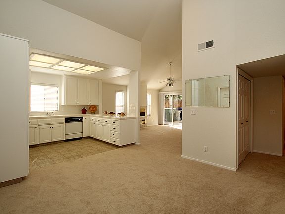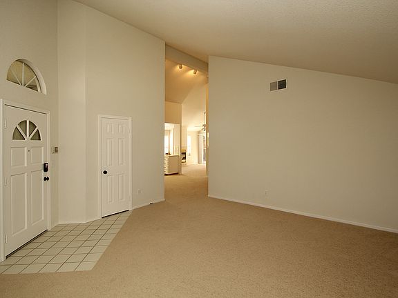 McCaffrey built Trend home is the perfect starter home for a family or the investor. All new interior paint and carpet, floor plan is open, clean and airy! New Window Coverings installed throughout most rooms. This home will not last long! Single story home features Living Room with vaulted ceilings and tiled entry which opens into Dining Area and Kitchen with tiled breakfast bar. Kitchen comes with white appliances including electric range, dishwasher and garbage disposal. Great Room with Gas Fireplace and Sliding Door to the Backyard. Inside Laundry is off the hallway. Master Bedroom is large and open with vaulted ceilings and Sliding Door out to back yard. Master Bathroom features a Roman Tub Shower with Dual Vanities and private water closet. His and Her Closets with Mirrored Closet Doors. Bath 2 has a Shower and Tub with Shower Door enclosure. Backyard has extended concrete and brick planter shelf with mature landscaping.