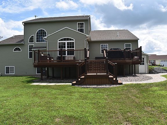 Welcome to Riverwalk! Previous Parade of Homes development in Brewerton! Amazing, one of a kind, custom home w/ 3,348 SF of living w/ oversized 3 car attached, side load garage. This beautiful home has a spacious, open floor plan perfect for entertaining. Enter & view the two story great room w/ a fireplace & gorgeous windows to let in natural light. Boasting a gourmet Kitchen, including a large island w/ ample counter space, stainless steel appliances, & built in wine refrigerator. Hardwood & granite counters throughout. First floor master suite w/ vaulted ceiling, jetted tub, separate walk-in shower, & double closets. Formal dining room, morning room, first floor laundry, large walk-in pantry just doesn't get any better! Ascend the staircase to the second floor loft area overlooking the great room to find 2 bedrooms & a full bathroom. Enjoy the finished walk up & out lower level w/ a large family room, full bathroom, den/office, possible 4th bedroom & plenty of storage space. Enjoy the large Trex-maintenance free composite deck w/ LED lighting & natural gas outlet. Relax overlooking the wooded area for extra privacy. Beautifully manicured lawn w/ custom landscaping & hardscapes!