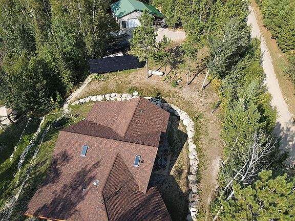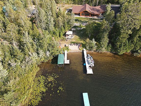Cedar Log home with attached 2 stall garage. solar panels. in-floor heat. garage pole building with 1 bedroom apartment. asphalt/concrete driveway. lakefront.