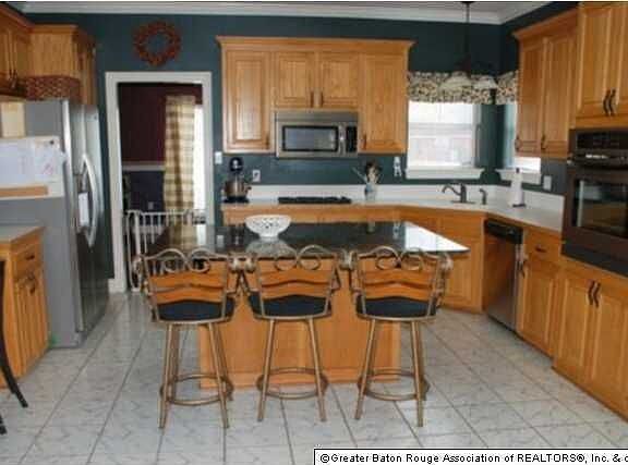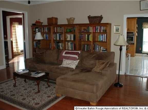 Just listed! Absolutely beautiful 4 bedroom/2.5 bath home in a quiet, friendly neighborhood just off Coursey & Jones Creek. This home is located in a park-like setting and offers a fully fenced, private back yard complete with gunite pool. Newer pool pump and 2010 Robot vacuum for pool will remain. Fresh paint in and out with updates galore! The kitchen is huge! Perfect for entertaining, this eat-in kitchen has a large granite island, built in desk, updated fixtures, large gas range, convection oven and stainless appliances. Just perfect for the cooking enthusiast! Each room of the home offers tons of natural light with floor to ceiling windows. This home has a split floor plan, large laundry room, large closets, and fireplace in living room, separate formal dining room, security system and keyless entry for your convenience. Must see to truly appreciate, call today for your private showing.