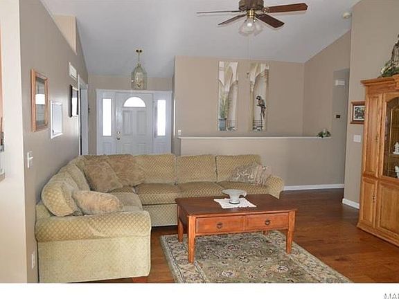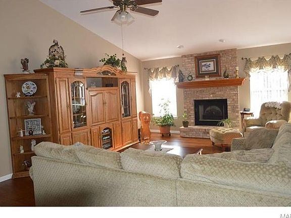 Only 13 minutes from Gravois Bluffs! Move-in Ready with Neutral Decor, this light & bright home features Cathedral Ceilings & Hardwood Floors. Each room flows into the next making entertaining a breeze! The Kitchen has TONS of cabinet space & overlooks the Breakfast area. The Master retreat offers a Walk-in Closet, Luxury Bath with Jet Tub, & Quartz Vanities. Main Hall Bath also has Quartz Vanity. The Great Room has a floor to ceiling brick fireplace. A formal dining room & laundry area complete the main floor. A 3-Seasons Room leads to a Large 2-Tier maintenance free Vinyl Deck, overlooking the peaceful woods. The Finished walk out Lower Level offers 1150 more sq ft with an open Family Room, Kitchenette w/Range, Fridge, Sink, & more cabinets, plus a 1/2 Bath. French Doors lead to the patio and beautifully landscaped backyard. Other amenities are a hidden ladder in the garage leading to storage above, and partially fenced yard.