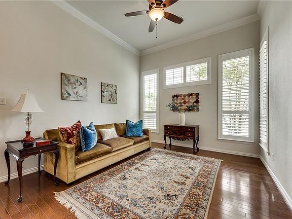 Discover the beauty of this fabulous 1.5 story in Sloan Creek Estates. Home boasts wood floors through downstairs living areas & study, neutral paint, & plantation shutters. The kitchen showcases granite counters, oversized island with pendant lights, SS appl, cust cabs with satin nickel hardware, built-in desk, ceramic tile floors, and breakfast nook. Spacious master suite invites you to enjoy sitting area, garden tub, dual sinks, & WIC with custom Elfa shelving. The bonus 2nd story offers 4th bedroom en suite with full bath or would make great media room. Residents enjoy private pond, creeks, trees, & walking trails. Located on lovely quarter acre lot near Hwy 121, Village at Fairview and Village at Allen.