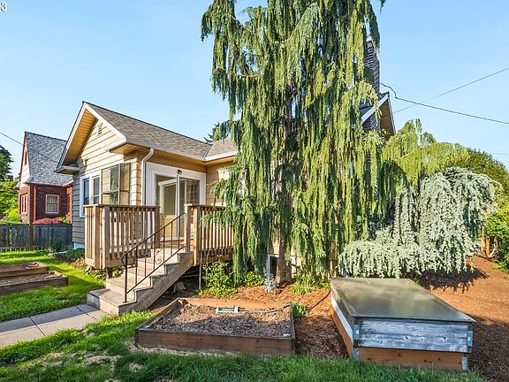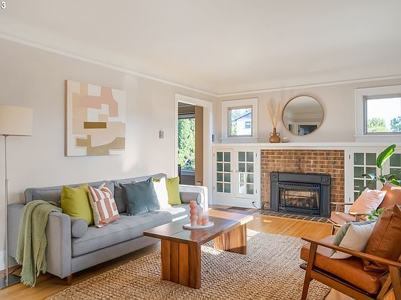 This Woodstock bungalow is a sunny delight that checks all the boxes! This 4-bed, 2-bath home exudes charm and offers options and opportunity. The spacious living room features a gas fireplace, original hardwoods and built-ins, picture rail and coved ceilings. The kitchen was remodeled in 2017, including new cabinets, quartz counters, subway tile backsplash, and SS appliances. It opens to a large dining space, brightly lit by a large south-facing picture window. The main level offers flexible living options, with three spacious bedrooms and a full bathroom featuring original patterned penny tile. Head downstairs to find a large 4th bedroom with double closets and egress window, plus a second full bath, and large utility and flex spaces, ripe for work-from-home, family room, or thanks to exterior entry, potential future separate living quarters? Don't miss the front porch and sweetsunroom, perfect for plants and all your stuff, as you head outside. Fresh landscaping and mature plantings give the fully fenced yard a private feel, and several garden beds await your green thumb! In back, enjoy dinner al fresco on the secluded paver patio. Move in or add it to your investment portfolio! Updates include: newer roof (2019), chimney work (2019), sewer line (2014), kitchen remodel (2017), decommissioned oil tank (2014), and newer vinyl windows. Ideally located minutes to parks, cafes, shops, and restaurants in Woodstock and Fopo. OPEN SAT 5/20 + SUN 5/21, 11am-1pm. [Home Energy Score = 4. HES Report at https://rpt.greenbuildingregistry.com/hes/OR10215022]
