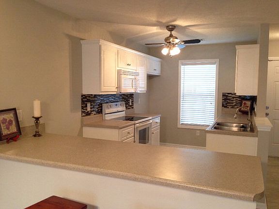 Stunning home with many updates, new laminate in living rm/dining combo, and 3rd BR. new tiled entrance, kitchen and hall bath. new carpet in 2 BRs. Glass tile back splash accent the open kitchen with plenty of cabinets and work space. utility room in garage. French doors at 3rd BR/office. New A/C Coil with warranty and service plan for spring cleaning of unit. Privacy fenced rear yard on one the largest lots in neighborhood. It is gorgeous.