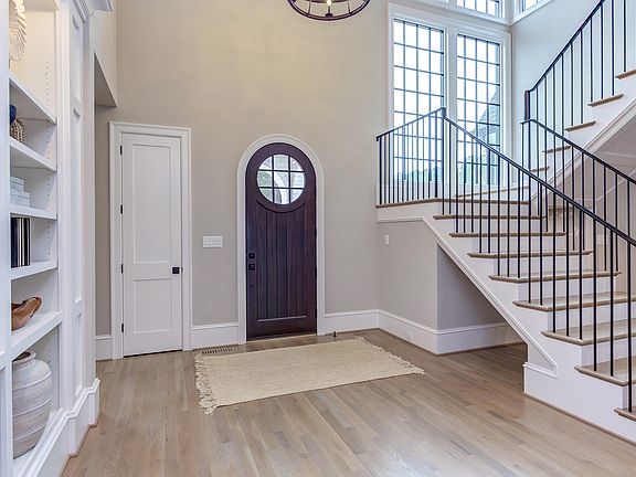 Nestled in the prestigious Avalaire neighborhood, this stunning custom-built 5 bedroom home offers luxury, modern amenities and energy efficiency on an expansive lot overlooking a serene wooded area that will never be developed. Warm and inviting with touches of a cottage traditional feel, the home features charming details like a rounded archway and a beautifully curved entrance door. From almost every window, you'll enjoy breathtaking views of the expansive front and back yards, creating a seamless connection with the beautiful outdoor surroundings. Inside, high-end finishes include white oak floors, Thermador appliances, quartz countertops, and a Dekton quartz linear fireplace. Designed for comfort, it boasts a dual zone gas HVAC, open cell sprayed insulation, a tankless water heater, and a steam humidifier. Enjoy indoor-outdoor living with a bluestone porch fireplace, Phantom retractable screen and room for a pool. Tech savvy features like interior/exterior cameras, video doorbell, Ubiquiti Pro Wi-Fi hotspots, and ANSI grade 1 deadbolts provide security and connectivity. Additional highlights include a garage 330v charger, generator hookup, dog wash, and whole-house water filtration system. This home combines elegance and convenience in a prime Raleigh location.