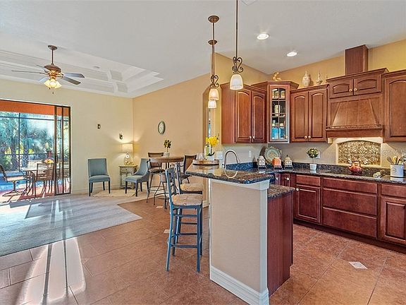 Amazing opportunity to own a newer home on an oversized double lot in the highly sought after community of Gulf Cove. If youre looking for peace and quite with some elbow room, this property is sure to impress! Upon arriving to the home you will notice stunning curb appeal, lush landscaping, brand new sod, mature trees, and an extra long pavered driveway with room for RV/Boat parking. Once inside you will instantly be captivated by the stunning details throughout the home including custom tray ceilings and crown molding. The kitchen pleasantly greets you when you first walk in and features granite countertops, solid wood cabinets, and stainless steel appliances including a built in oven/microwave and flat cook top with a range hood. The living room and dining room was conveniently designed as a great room with 2 pocket slider doors allowing you to choose how you want to arrange the main living area of the home. The master suite is spacious with a 3rd pocket slider that provides lanai access and his and her closets. The master bath has his and her sinks that match the kitchen cabinets/granite, a gorgeous walk in shower, and a large soaking tub to relax and enjoy. On the opposite side of the home the guest bedrooms are ample in size with large closets and the guest bathroom features a shower/tub combo with tiled walls. There is also an enclosed den/study that could easily be converted into a 4th bedroom! The interior laundry room is well sized and leads to the oversized garage with brand new epoxy floors. The lanai of the property is the current owners favorite part of the home and is absolutely breathtaking. Thanks to plenty of space and the custom outdoor kitchen, this area is great for entertaining guests. The outdoor kitchen includes a wine cooler, full fridge/freezer, grill, double gas cook top, skillet, keg with refrigeration, an extra deep stainless steel sink, and a granite bar top. Not feeling like entertaining? No problem.take a dip in your heated pool, lounge near the jetted pool shelf or step outside and relax by the firepit. This property is located less than half a mile from the community park and boat ramp which is included in the optional HOA and provides quick gulf access and great fishing. With everything this home offers, it wont last long.