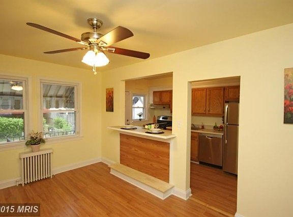 FANTASTIC PORCH FRONT ROWHOME WITH 3 FINISHED LEVELS & OFF STREET PARKING! New wood flooring throughout, spacious living room, separate dining room, updated kitchen w/ new ss appliances, upper level with 3 bedrooms & 1 full bath, partially finished basement w/ family room & storage/laundry area, & off street parking! Move right in!