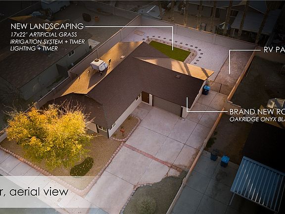 Indulge in modern luxury with this fully renovated home featuring a new Oakridge Onyx Black roof. The exterior boasts a contemporary color scheme, new vinyl windows, and a sliding door to the backyard oasis, complete with irrigation, lighting, artificial grass, and RV parking. Inside, relish a brand-new kitchen with deluxe features, including soft-closing cabinets and a big island. The standout feature of the house lies in its inclusion of a flexible and versatile flex room. The accent wall with a 50-inch fireplace, 7mm deluxe vinyl flooring, and upgraded bathrooms add to the allure. Illuminate your home with 6-inch recessed lights, complete with dimmable switches and nightlights.