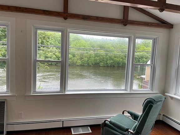 awesome waterfront property front yard goes right into the beautiful Lehigh River backyard is the DNL Trail which goes for hundreds of miles quiet neighbourhood on a private road Beautiful views from the house multiple decks and covered back porch offstreet parking