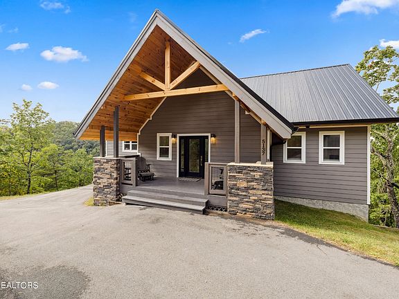PRIVACY ABOUNDS at this 13.98 acre mountain lodge! Are you tired of homes in the Smokies on top of each other?! Then this is the perfect one for you!! Built in 2023, this magnificent fully upscale, furnished home is completely move-in ready for a permanent residence, vacation getaway and/or great overnight rental! The Homestead development has larger lots to create more privacy. At the end of the cul-de-sac on settlers View, turn into the circular paved driveway and view this basement rancher lodge with all James Hardie siding exterior. The covered front porch is very inviting and finished with a knotty pine ceiling. As you enter the front door you are greeted at a distance with a floor to ceiling gorgeous stone wood burning fireplace flanked by vertical blinds and a vaulted ceiling. The views out back bring all of nature indoors and captures the Smoky Mountains. The fully open concept kitchen/dining/living room makes for relaxed living. Kitchen is fully equipped with a large quartz countertop island, stainless steel Bosch appliances, 6 burner gas cooktop, pop up electrical outlets, farmhouse sink, subway tile backsplash, double ovens as well as microwave, and a large pantry! Luxury vinyl plank floors throughout the entire home for practical living. Main level primary ensuite has an oversized tile shower with river rock base. Take your morning coffee straight out onto the partially covered deck and relax in one of the many Adirondack chairs. Enjoy the best outdoor grilling on the Blackstone and/or the Genesis Weber grill. Deck is already prepped for a hot tub and outdoor TV. On the lower level is another primary ensuite and 2 other bedrooms and a 3rd bathroom- all with walk-in tiled showers. Gathering area is decked out with lush white leather recliner sofa. Enjoy the gas fireplace while watching a movie. Step out onto the lower level deck that spans the entire home w/ even more Adirondack furniture! Never worry about losing power with the Generac generator.