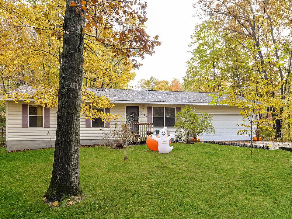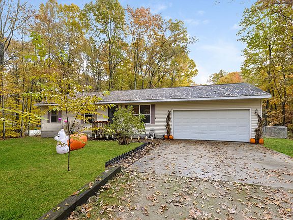Alluring 3 BD ranch home on 2.4 wonderfully wooded acres, complete with 30'x 30' pole barn in Twin Lake! Stylish laminate floors and a contemporary color scheme showcase this fantastically sensible single level plan, while the open kitchen and dining area conveniently access both the 2-stall attached garage and rear deck. The fenced back yard also encloses the massive barn, which affords a host of opportunities for the hobbyist, gear-head, or recreational enthusiast. The large patio and overheaddoor could even serve as a party annex for those who love to entertain! Lots of possibilities and centrally located near M-120 and US-31. Don't miss floor plans for details!
