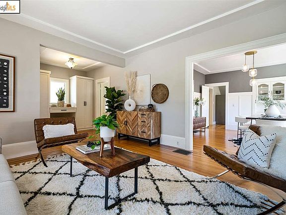 This classic, updated Rockridge Craftsman features a gracious entryway, big living room with a brick fireplace, built-ins, & oak floors with mahogany inlays. The formal dining room features a built-in hutch/buffet to store & display your dinnerware, and serve your guests. Spacious eat-in-kitchen is a charming mix of vintage & modern--traditional-style cabinets with black stone countertops, custom-crafted center island with marble top, and a cool Wedgewood stove. Downstairs bath is updated with a double vanity, subway tile & clean, modern fixtures. Main level bedrooms are a nice size and have ample closets. Upstairs is a large master bedroom and full bath. Backyard is lush, green and perfect for entertaining and enjoying a hot tub under the stars! This home is fabulous--and it's located near all your essentials on College Ave-- restaurants, shops, cafés, farmer's market & more. Convenient to 24/13/580 freeways, BART, tech shuttles and Casual Carpool. 91 WalkScore® and 80 BikeScore(tm).