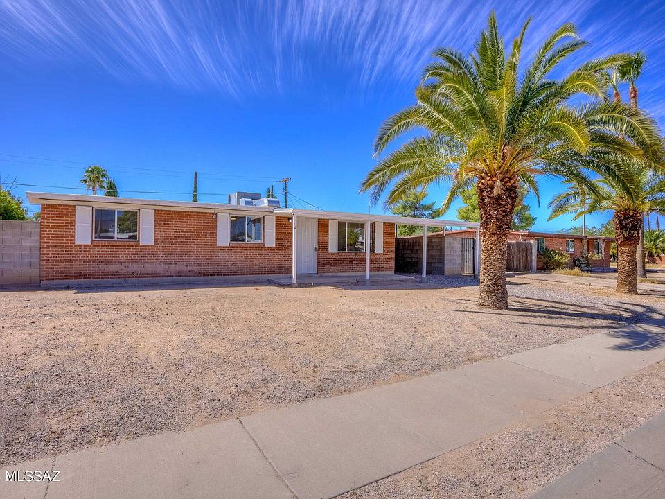 Brick home, 3 bedroom 2 bath and move in ready. New paint and new carpet (bedrooms only) and newly cleaned /polished Saltillo tile in the main spaces. Enormous lot and large storage/workshop outbuilding. Carport parking and easy care yards. Back patio for entertaining. Single level and no stairs. North/South exposure helps with those summer utility bills. New window blinds throughout. NO HOA and plenty of room for toys and parking. Close to shopping, entertainment, bus lines and schools. Great price for a move in ready home! Hurry.