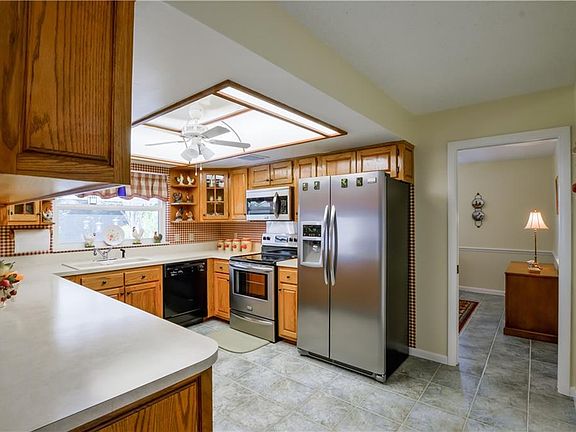 - Ceiling Fans(s), Skylight(s), Window Treatments, Solid Wood Cabinets, Eating Space In Kitchen, Kitchen/Family Room Combo, Thermostat