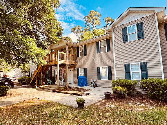 Great condo in central location of Wilmington off Greenville Loop Road near Pine Grove with easy access to College Road, MLK, downtown Wilmington, UNCW, and plenty of shopping and entertainment. This 2nd floor unit boasts a lovely updated kitchen with tile backsplash, stainless steel appliances, granite countertops, pen lighting and wine glass rack. There is LVP flooring throughout the unit, in the open concept living area go through the sliding glass doors to the 2nd floor balcony overlooking a nicely wooded space. There is ample room with three bedrooms, the primary has an en suite bathroom with dual vanity sinks, and plenty of closet space. Washer/Dryer is included in the rent! Trash is available on site. Managed by Cotton Property Management, representing the owner.