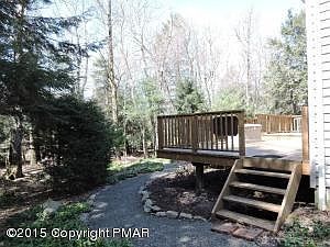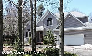 Seriously Priced to Sell! 2,230 sq.ft. 4 beds, 2.5 bath primary or weekend home on the 5th fairway offers cost saving energy efficient 2x6 insulated exterior & Peachtree windows. Butler Pantry is adjacent to both formal dining rm & the Gourmet Granite Eat-In Kitchen which features dozens of cupboards, laminate flooring & 12' sliding glass doors.Another set of 12' sliding doors highlight the family rm. w/tile flooring, A/C & gas fireplace. Step up to the living room which could also be used as a studio or office. Wood Spindle Staircase leads to Master Suite w/tray ceiling and two walk-in-closets, three bedrooms, full bath and access to the attic. 14 x 27 two tiered deck, Landscaped half acre, 2-Car Garage, circular paved driveway. Pocono Farms, quiet yet conveniently located!!