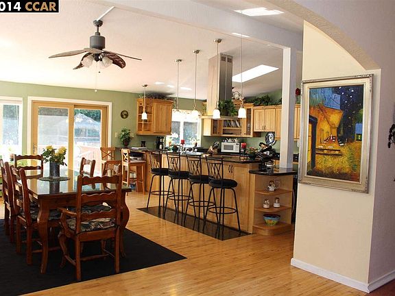 Open floor plan on half acre lot! Beautifully updated interior w/ large yards for entertaining, play & garden. Vaulted ceiling in living, dining and kitchen. Remodeled chef s kitchen has slab granite & custom cabinets & gas burners. Dual pane windows. Sauna & spa. Owned 18 solar panels.