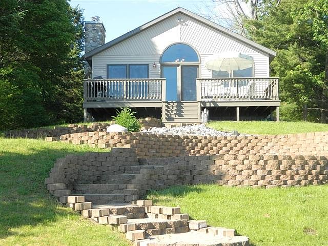 West Shore of Hubbard Lake, affordable 50' lot with ranch 2 bedroom, full bath, open cathedral kitchen, dining, and living room. Beautiful field stone fireplace, French door opening to lakeside deck overlooking brick paver landscaping to water's edge. A must see to appreciate.