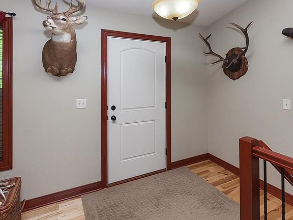 Woodland retreat! This home sits on 19.85 acres overlooking an acre pond, timber and a large food plot to draw in local wildlife. The home is stunning with beautiful hardwood floors throughout the open floor plan. Striking granite counters and an island with seating in the kitchen. The master suite is on one side of the home, giving you privacy, with a trey ceiling and radiant heated tile in the bathroom. The two additional main floor bedrooms are on the opposite side of the home and another full bath with radiant heat tile. The walk-out basement boasts another large family room with additional kitchen, bedroom and bath. All of the finished basement area has in-floor heat. All this and a huge storage room with built-in shelving and a hobbyist corner. If you are an avid hunter the 6 stands on the property give you many options from which to do so. The pond is stocked for fishing and there are several walking paths throughout the timber.