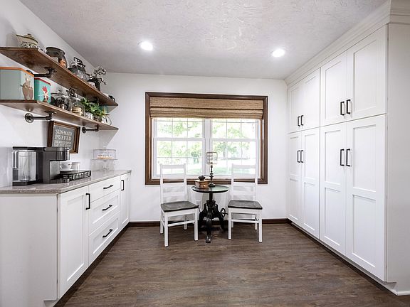 Beautifully Updated & Meticulously Maintained 4Bed/2Bath Home on Incredibly Private 3/4 Acre Lot in Pendleton Schools! You will fall in love with this gorgeous home from the first step inside! Custom Amish Woodart White Cabinets, Granite Countertops, Subway Tile, Stainless Steel Appliances, Modern Light fixtures, Breakfast Bar, & the most charming & cozy Breakfast Rm complete with Coffee Bar will having you wanting to spend all your time in the Kitchen. The Eat-In Dining Rm opens to the large Living Room making entertaining a breeze. All flooring on the main has been updated to 9" Coretec Luxury Vinyl Plank in a deep & rich, warm tone. New windows w/full screens & custom window coverings everywhere (except front 2 bedrooms) are also beautiful touch. Solid oak stairs carry you to other levels including upstairs bdrms. Primary is so spacious w/en suite featuring double vanity, modern tile shower, & WIC. Additional bdrms are each a great size, too and feature custom closets with adjustable shelves. Basement family room is extra large w/focal fireplace, steel lined & w/blower system to bring the warm air inside! 4th bedroom is located in basement along with utility room. You'll love spending time outdoors out back under the covered patio - complete with footer if you want to enclose it - running through the HUGE yard, enjoying time around the firepit, & swinging on the swing of one of the regal & mature trees! Outside the front door is another charming, open patio & beautifully maintained landscaping to welcome friends & family. Newer 12x24' Amish Wayco insulated mini barn is perfect for storing all your garden & lawn tools! Garage doors on the house are insulated & garage has plumbing rough-in for half bath! Mechanicals include whole house water filtration system & NEW Furnace/AC! Don't miss your chance at this wonderfully maintained home with tons of space & country living outside of Anderson but in Pendleton Schools!