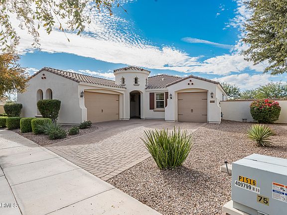 JUST DROPPED $39,000!! Welcome Home!! Be ready to fall in love with this beautiful 4 bedroom, 2.5 bath in one of the best-selling master-planned communities know as Eastmark!! Step into this inviting home featuring living room/family room and a formal dining room. With the split floor plan, the open master bedroom leads into a large bathroom with dual sinks, gorgeous tiled walk-in shower and separate tub. The other bedrooms share a jack and jill bathroom. Check out the powder room with a custom wood vanity sink! This oversized lot features a resort style fenced pool and tons of artificial turf on both sides of property. Children's play area will keep the kids entertained. Plenty of space for fun gatherings. Priced to sell, schedule your tour now!