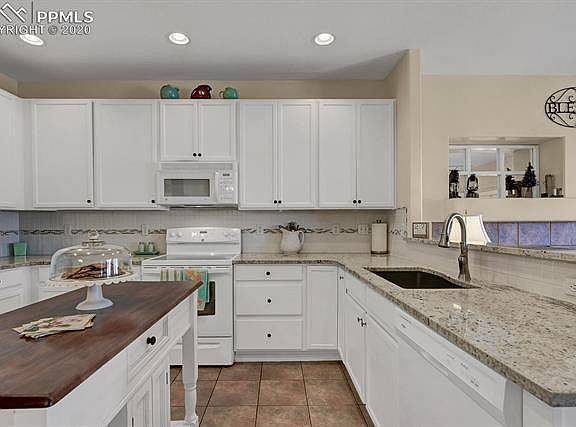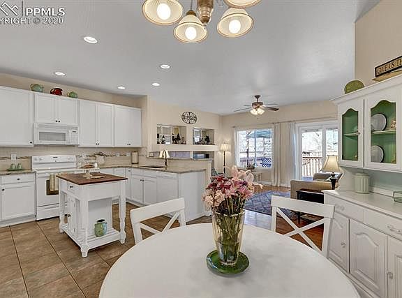 Lovely, unique, inviting rancher *Walk into Open Living/Dining area w/9 Ft ceilings *Bright Open Spacious Kitchen w/Granite counters, New dishwasher, Eat-in area & Pantry * Opens to Family Rm w/Fireplace, Wood flrs*W/O to wood deck, Lovely Treed yard (in the Spring!) Raised plant beds, fruit trees, aspen, etc. Backs to wide Walking trail * Oversized 2 car garage w/plenty of space for Workshop * Community center w/pool, tennis courts, basketball courts, park for outdoor fun *Close to shopping, schools, Powers, Woodmen, I25 Lovely, unique, inviting rancher with 4 bedrooms on ML * The front living/dining area is a total of 20 x 15 SF so plenty of room for company! *The large kitchen with Slab Granite has an eat-in area & Opens into Family Room with a Gas fireplace & a space for a big screen TV * Kitchen also has gas stub-in for gas appliances * Down private hallway is a Large Master Bedroom with 5 PC Bath & a Walk-in Closet along with two secondary bedrooms * There is a 3/4 Bath in this hallway to service secondary bedrooms & guests *The fourth bedroom in the front of the home is currently being used as an office * All of main level has 9 ft ceilings * In full bloom the yard is beautiful with trees around the sides & back of the property * There is an apple tree, aspens & many others *There are also raised plant beds with flowers, strawberry plants & raspberry vines * There is a deck and a concrete patio when you walk out back * The yard backs to a wide walking trail so you have a good deal of privacy * Plenty of space in Full unfinished basement for future use * The community pool and tennis courts, basketball courts and play grounds are great for recreation or gatherings with friends * Great location Close to Schools, Shopping, Hospitals, Powers corridor, Woodmen and I25
