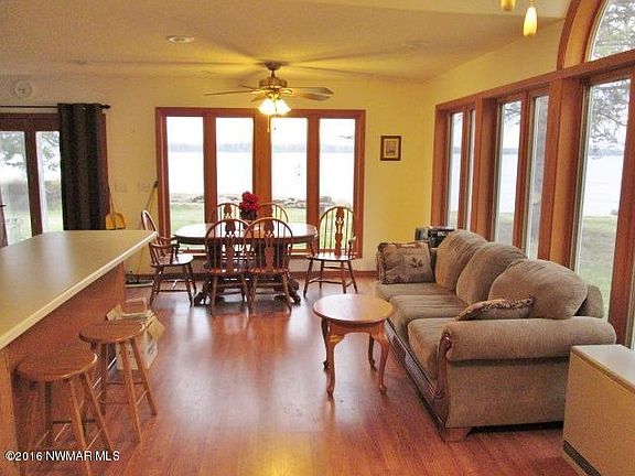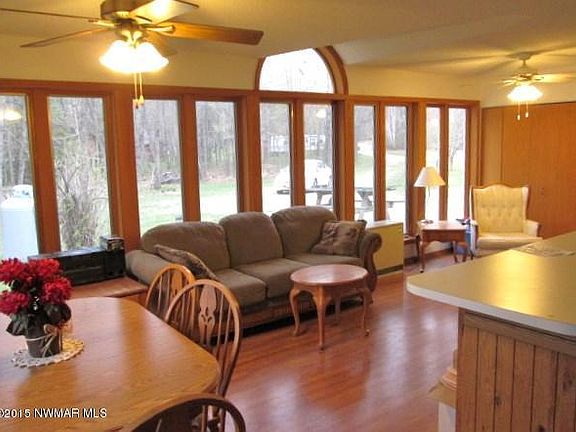 Grace Lake with perfect sand beach! 2 bedroom, 1.75 bath home with 3 stalls of garage. 200' frontage. Great elevation. Needs some work but functional. 2nd bedroom is open loft area.